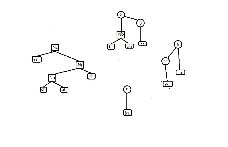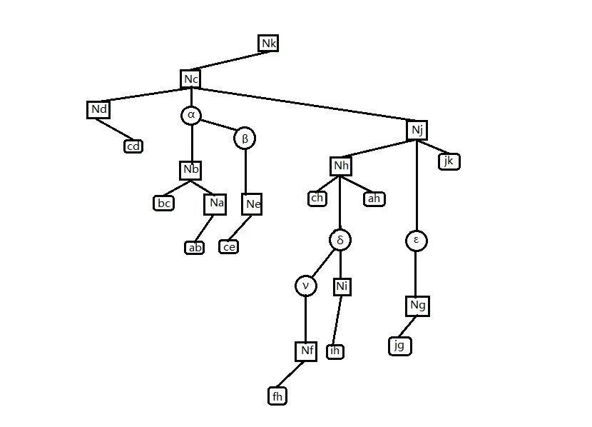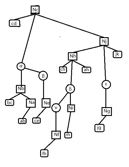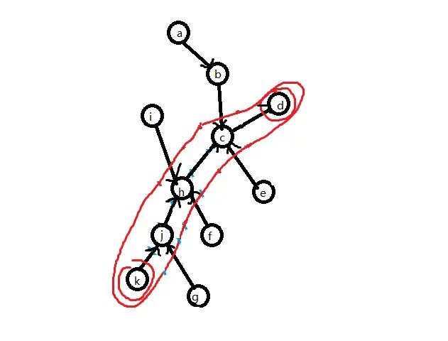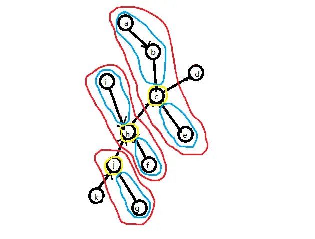 由树收缩的基本操作可知,簇路径上的点、边 \((j,h,c,jh,hc)\) 的信息最后是通过 Compress 操作才加入 \(C(k,g)\) 的,而的非簇路径点 \((a,b,i,f,g,e,ig,\cdots)\) 是通过 Rake 操作才加入 \(C(k,g)\) 的.