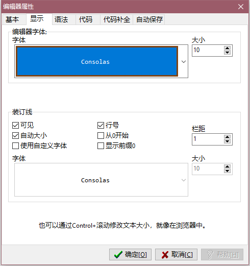 点击工具 -> 编辑器选项,然后选择 "显示" 选项卡.